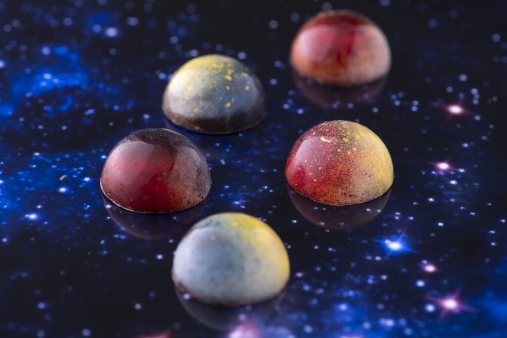 また、チョコレートに吹き付けをすると、素敵なグラデーションに。
